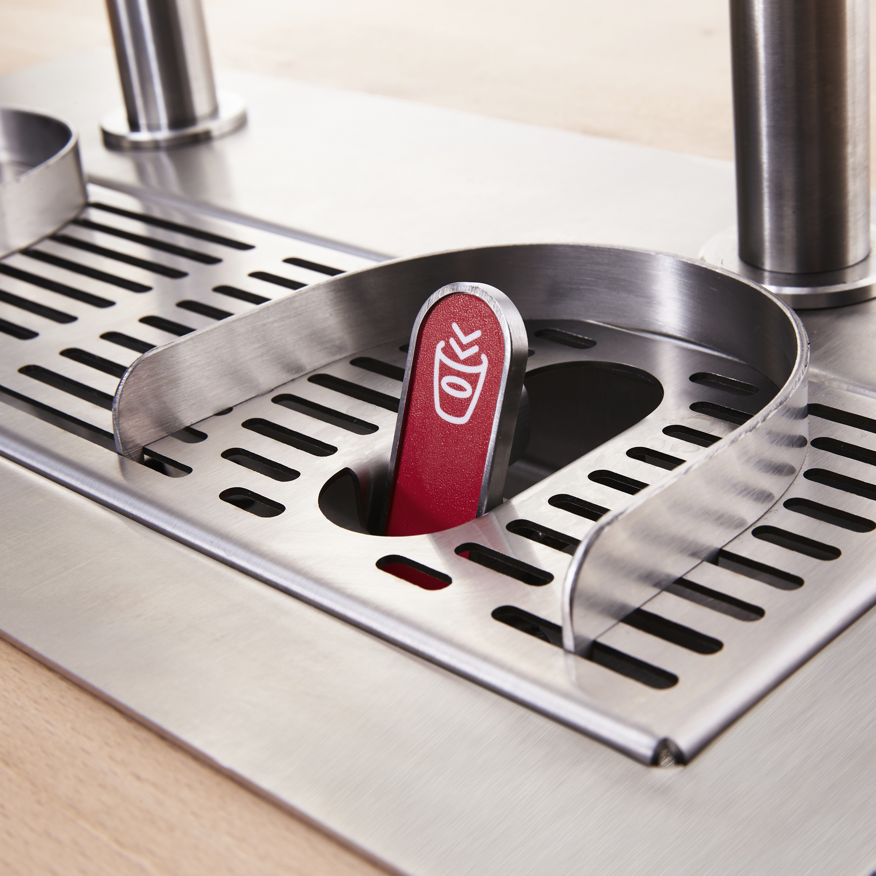 Beverages are dispensed from airports below the taps. Just as we designed the dispensing sensor to be pleasing to use we set ourselves the same goal for the connector. Reloading is super fast, but we figure staff deserve a bit of magic too!