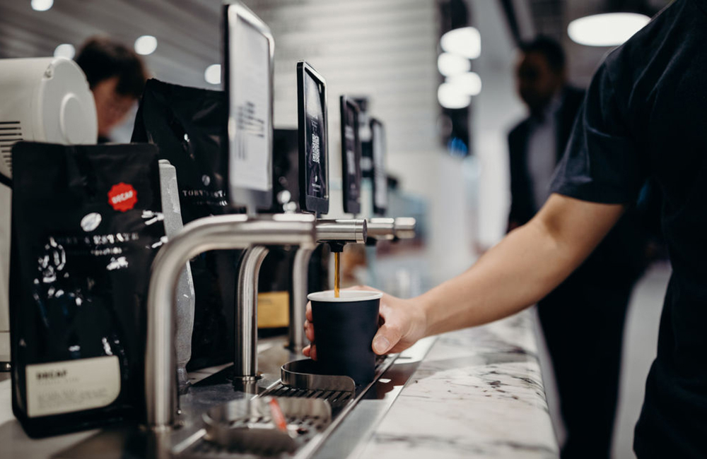Hot and cold batch brewed coffee on tap